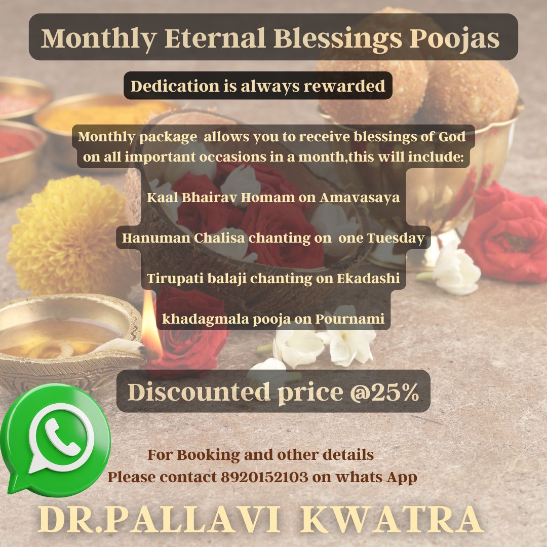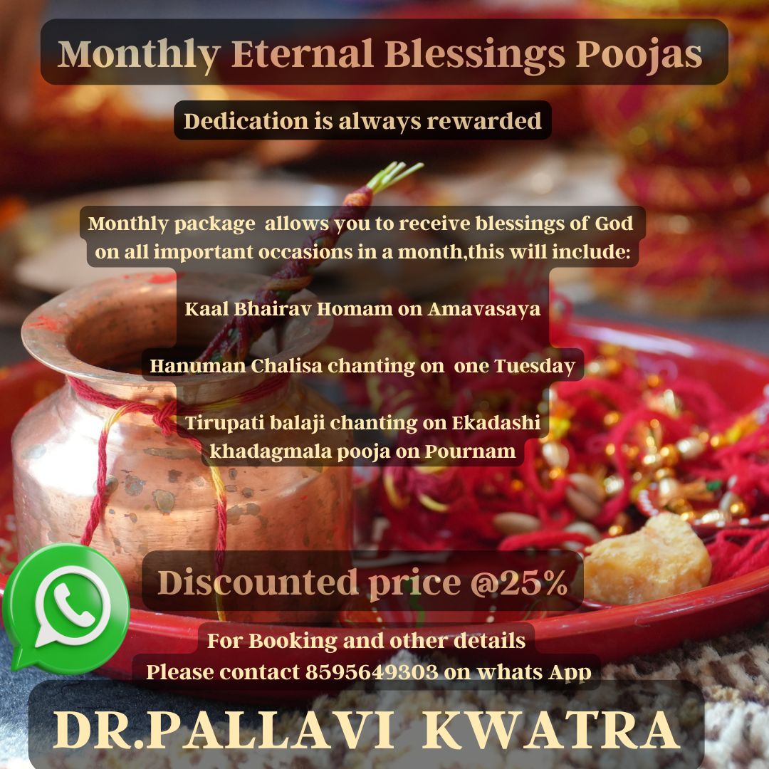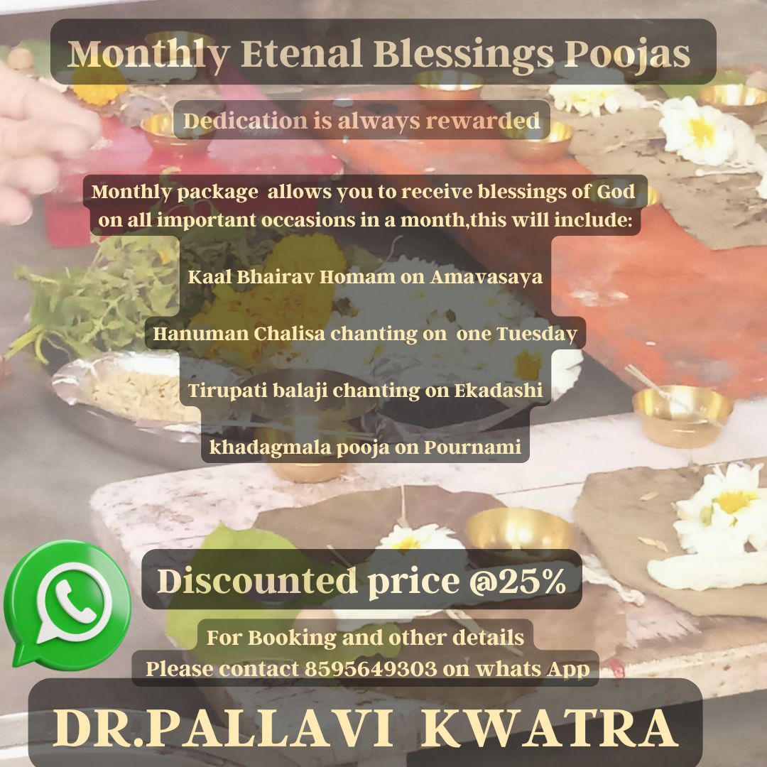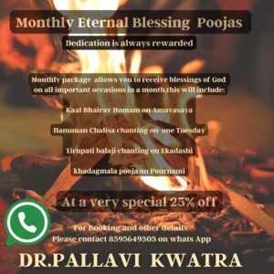 we are offering a 25% discount on our monthly puja service. This is a unique opportunity to engage in these transformative rituals at an affordable price. By choosing our service, you are not only investing in your spiritual growth but also ensuring that you receive the maximum benefits of each puja through regular participation.