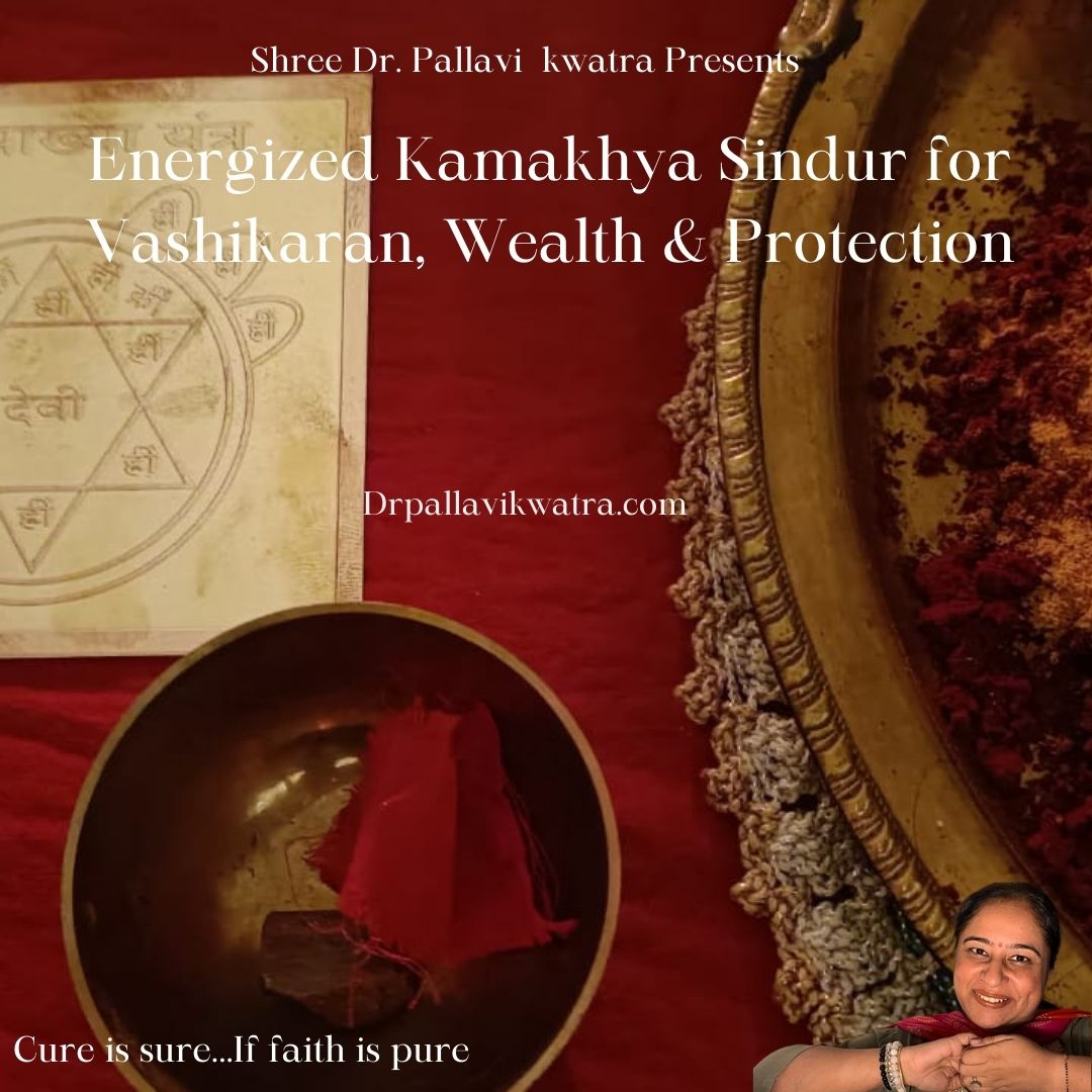 Kamakhya Mahashakti Kavach is a powerful silver taweez energized by Shree Dr. Pallavi Kwatra, Sri Vidya & Kamakhya upāsaka. It contains authentic Kamakhya raktavastram and sindoor sourced from the sacred Kamakhya Devi Temple in Guwahati, India. Sealed in 925 silver and infused with potent mantras, this kavach offers divine protection, awakens inner Shakti, and supports spiritual transformation.