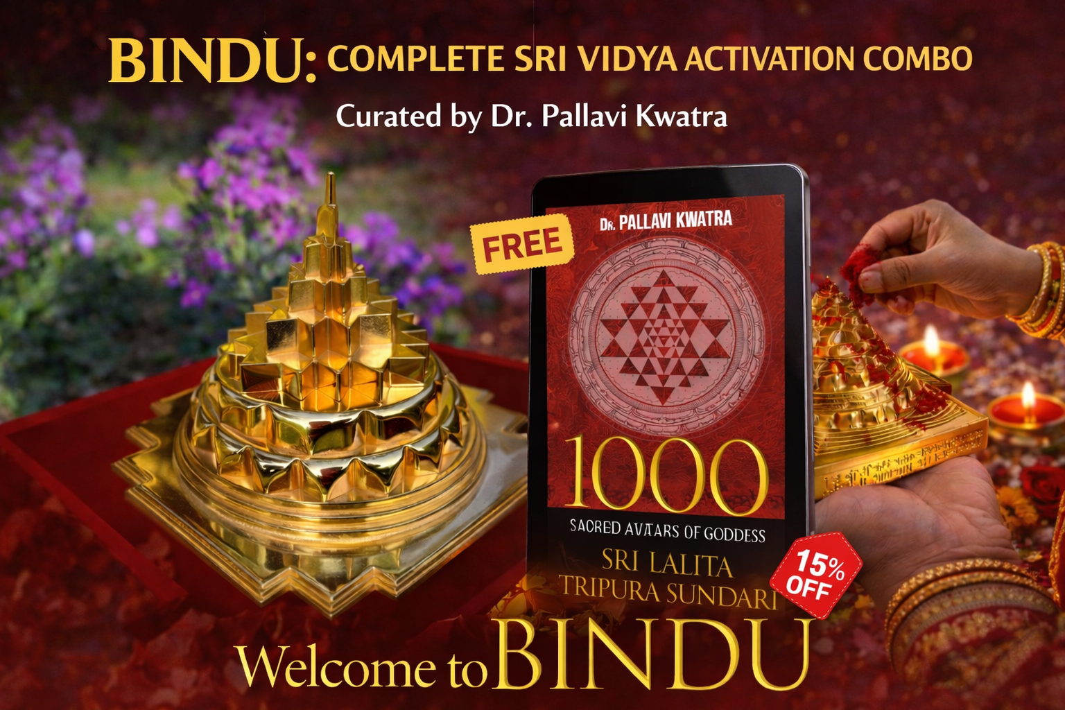 BINDU: Combo of Energized Shri Yantra, Free Unique Pictorial Lalitashasranama E-Book & Srividya Shakti E-courses