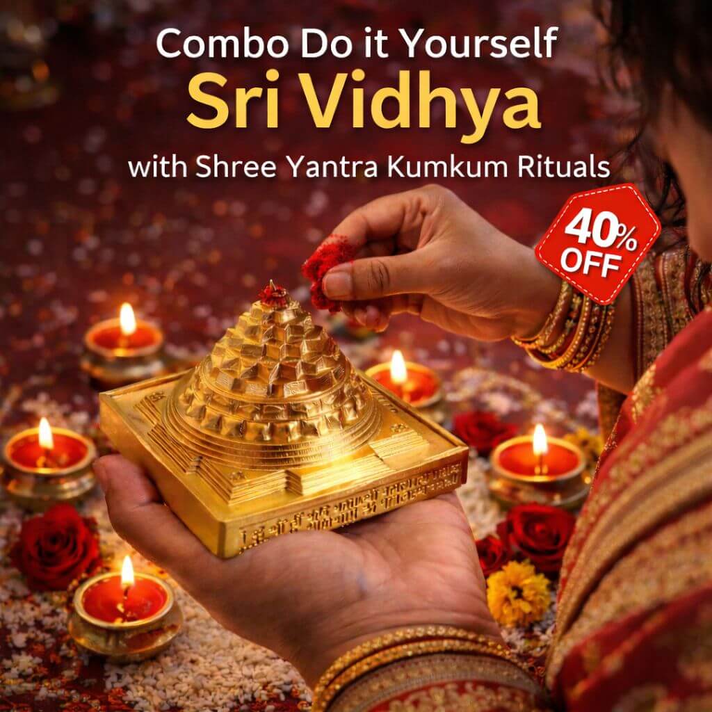 The Sri Vidya Combo is a sacred and comprehensive collection curated for seekers of the Divine Mother’s grace, bringing together the essence of Devi Lalitatripurasundari and the powerful geometry of the Sri Yantra. Each inclusion has been carefully handcrafted, consecrated, and designed to support spiritual practices, meditation, and Sri Vidya upasana.