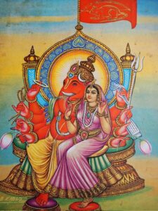 - On the cosmic level, it portrays the sacred union of Śiva (Gaṇapati as consciousness) and Śakti (the beloved, the creative force).